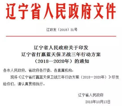 遼寧省打贏藍天保衛戰三年行動方案(2018—2020年)