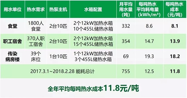 根據(jù)該人民醫(yī)院要求,分別對食堂、職工宿舍及傳染病房樓設(shè)置獨(dú)立的點(diǎn)對點(diǎn)的空氣源熱泵熱水系統(tǒng),不改變原先的閉式供水系統(tǒng)形式,改造后的系統(tǒng)需完全滿足日常熱水需求,并留有設(shè)計余量。由于空氣源熱泵所具備的優(yōu)勢和特性正好可滿足該要求,該人民醫(yī)院最終決定通過“節(jié)能效益分享型合同能源管理的模式”,對部分功能區(qū)(食堂、職工宿舍及傳染病房樓)實施了熱水系統(tǒng)改造,并選用了“5套10匹承壓式熱泵熱水系統(tǒng)”,分別供應(yīng)醫(yī)院食堂、職工宿舍及傳染病房樓熱水,并簽訂了為期5年的節(jié)能效益分享型能源管理合同。