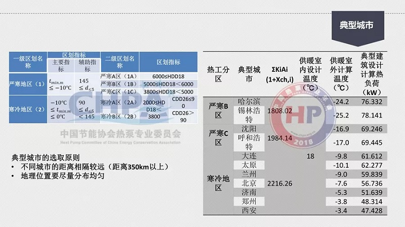 在典型建筑方面,我們還選擇了一個建筑平面,針對城市特點選擇了嚴寒地區的B區和C區以及寒冷地區。在空氣源熱泵針對地區適應的建筑問題上的五個氣侯區供暖,分別屬于夏熱冬冷地區、寒冷地區、嚴寒地區,其中嚴寒地區分為A區,B區,C區。寒冷地區又分為B區和C區。