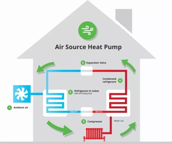 (空氣源熱泵安置在室外,所以不像燃氣鍋爐或生物質鍋爐那樣,它們不會占用你家里的任何空間。)