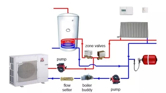日本三菱(MITSUBISHI)空氣源熱泵系統——供暖系統,示意圖