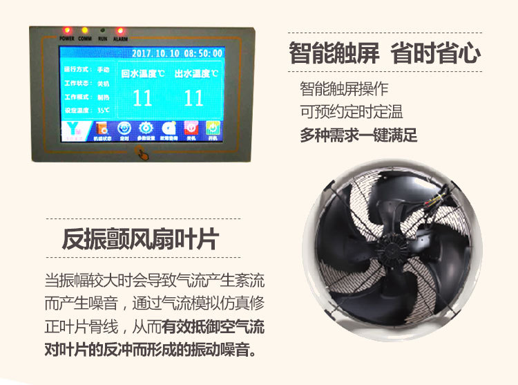 由于主機制熱,化霜時易產生積水,而這些積水在高溫寒冷地區在主機底部囤積、結冰、影響系統的性能。魯禹的二次冷凝盤融冰技術,更徹底地融化底部囤冰,從而保證主機始終保持優越的性能